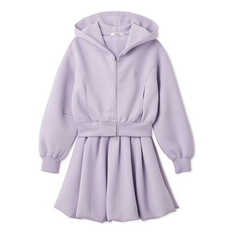 SNIDELで人気のダイバー素材のセットアップが、今期らしくフーディーとバルーンデザインのミニスカートとのセットアップになって登場。トップスは身幅がやや太めのゆったりとしたリラクシーなシルエットで、フードは顔まわりが華やぐ大きめなサイズで仕上げています。フロントのファスナーは、便利な上下逆開仕様にしました。サイドにポケットもプラスしています。胸元にSNIDELロゴ刺繍を添えて上品な仕上がりに。ミニスカートはトレンド感のあるバルーンシルエットでふんわりと仕上げました。ウエストが総ゴムで着脱も楽ちんです。スカートにもポケットをプラス。それぞれ単品使いにも着回しの効く便利なアイテムです。