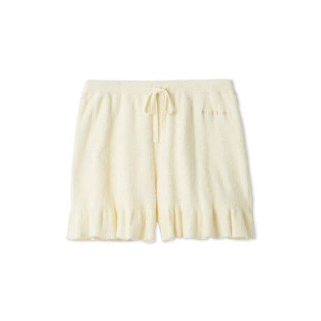 春に似合う柔らかな色合いの’スムーズィー’を使用した、フリル付きのニットシリーズです。裾にお花のようなフリルをあしらった、なめらかな肌触りのショートパンツ。控えめなフリルなので幼い印象になりすぎず、大人可愛くはいていただける1枚です。左腰にはブランドロゴ刺繍入り。色はイエローとピンク、ラベンダーの3色を揃えました。同シリーズのプルオーバーと合わせると、裾のフレアが二重になってより華やかな装いをお楽しみいただけます。