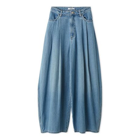 立体的なカーブシルエットが目を惹く、ボリューム感たっぷりのワイドデニム。