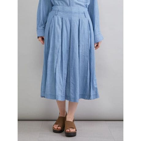 シアー感のあるデニム素材を使用した、タックプリーツスカートです。