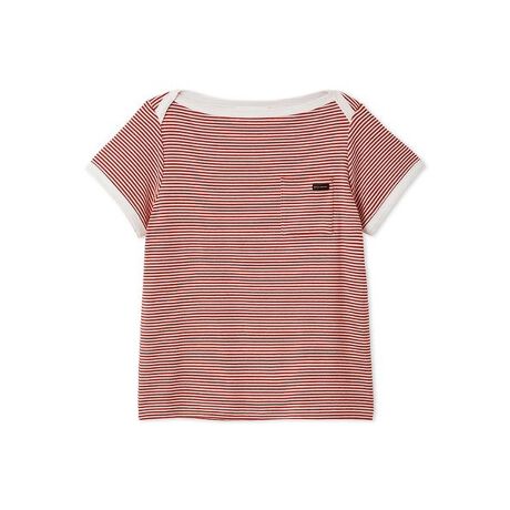 <b>【白の配色ラインを効かせた、レトロでキュートなボーダーTシャツ。着心地よく着映えする、バランスのよいボートネック】</b>