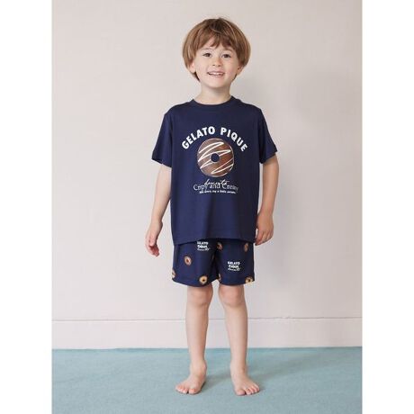 プレーンドーナツとチョコレートコーティングドーナツを柄プリントで表現した、POPでカジュアルなKIDSハーフパンツです。春からの季節にうれしいなめらかな接触冷感のレーヨンを使用し、おしゃれと機能性を両立。短すぎない丈感で安心感のあるはき心地です。同シリーズのTシャツを合わせたり、HOMMEやBABYサイズとのリンク・コーディネートもお楽しみください。