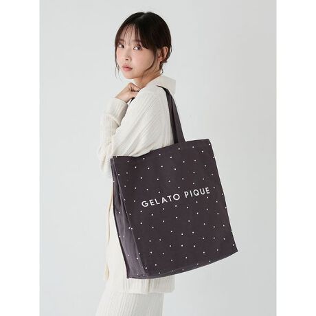 毎回好評をいただいているgelato piqueの定番アイテム。しっかりとしたキャンバス素材を使用したホビートートに、柄プリント入りの新型が登場しました。B4サイズが縦・横にすっきり収まる大きめサイズ。書類やパソコンはもちろん、コンサート鑑賞やスポーツ観戦などの応援グッズも収納しやすいマチありのフォルムで、幅広いシーンに役立ちます。内側には小物がまとめて入る大きなポケット付き。色は落ち着いた小花柄のネイビーと、ドット柄のチャコールグレーをご用意しました。ハンドルにお好みのキーホルダー等を付けてアレンジするのもおすすめです。