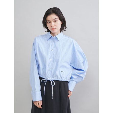 爽やかなストライプ地の、ショート丈の長袖シャツです。