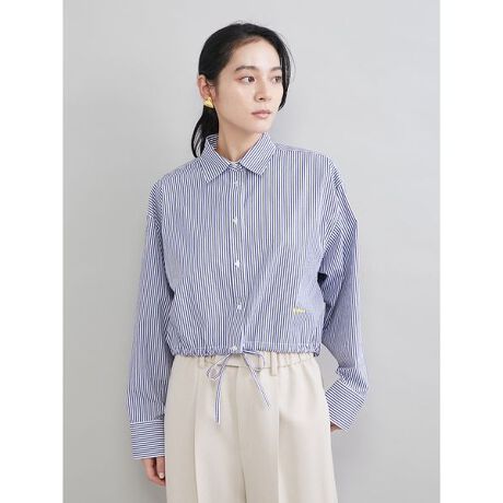 爽やかなストライプ地の、ショート丈の長袖シャツです。