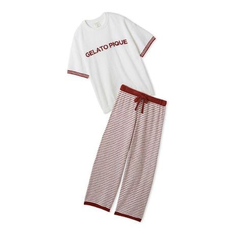 なめらかな肌触りで愛される定番ニット’スムーズィー’を使用した、毎日カジュアルに着用いただけるセットアップです。袖にラインを入れたロゴジャガード入りの半袖プルオーバーと、細めピッチのボーダー柄がおしゃれなロングパンツの組み合わせ。ストレートのゆったりとしたパンツは、右後ろにロゴ刺繍入りのポケットが付いています。色はネイビーとピンク、グレー、レッドの全4色。ピケらしい可愛い色合いから、落ち着いた色合いまで揃えているので、春の新生活に向けたギフトにもおすすめです。
