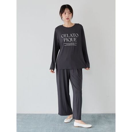 <b>【落ち感がきれいなレーヨンのロゴ入りロングパンツ】</b>