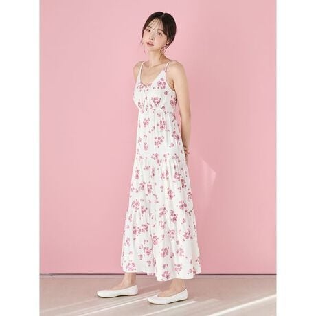 <b>【咲き誇る八重桜プリントが目を惹くキャミワンピース】</b>