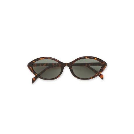 美しいカーブを描くセルフレームは、適度なボリューム感で小顔効果も叶います。テンプルに付いたメタルのドットもポイントです。