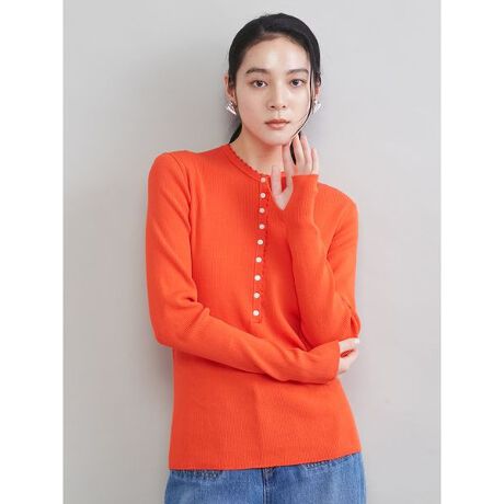 <b>【人気のヘンリーネックに、スカラップのディテールを加えて女性らしくアップデート。着心地の良さも◎】</b>