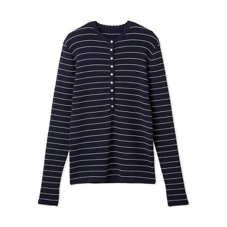 <b>【人気のヘンリーネックに、スカラップのディテールを加えて女性らしくアップデート。着心地の良さも◎】</b>