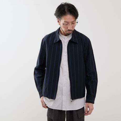 クラブストライプで仕立てられたジャケットは、クラブライフのユニフォーム的な雰囲気を表現しています。