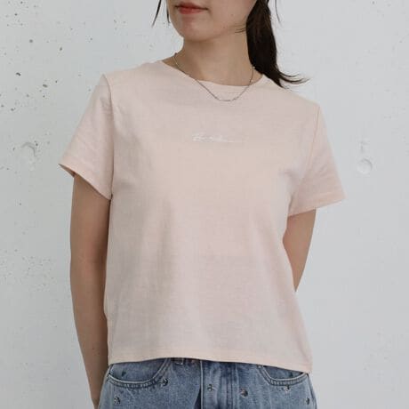 ・胸元のロゴ刺繍がワンポイントになったシンプルTシャツ