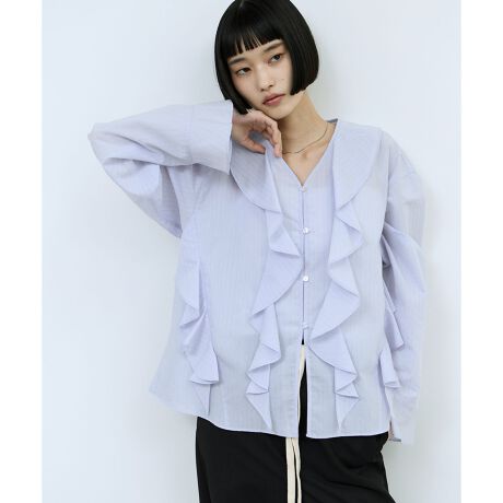 ラッフルフリルを大胆に施したブラウス。