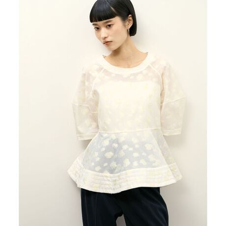 構築的なフェミニンシルエットが特徴のペプラムトップス。