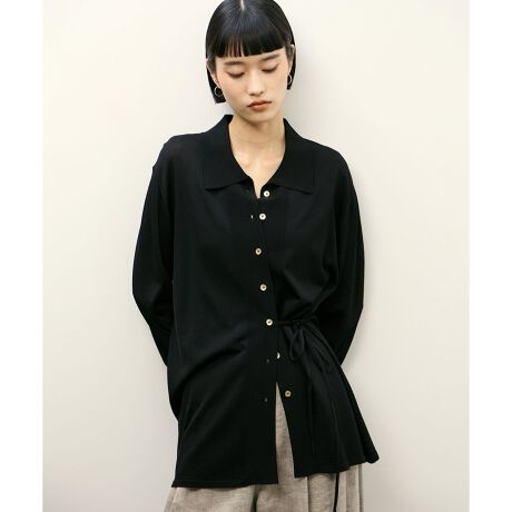 リラックスしたシャツ型のニットカーディガン。