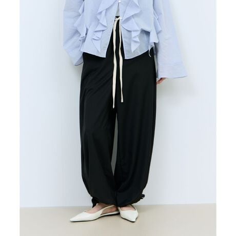 裾を重ねボタンで留めることでバルーンシルエットに、またボタンは留めずに裾端同士を結んでいただいてもニュアンスがプラスされるデザインボトムス。