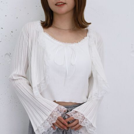 ・胸元のリボンがポイントで、インナー見せコーデにもぴったり