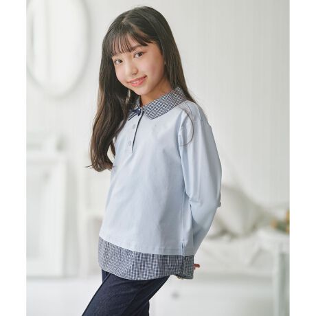 ■デザインチェック柄を効かせた重ね着風のトップスです。