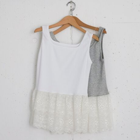 ・裾にはトレンドのレースをあしらい、コーデのアクセントに