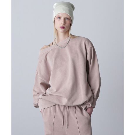 エッジの効いたトレンド感あるパウダー加工を施したスウェットチュニック