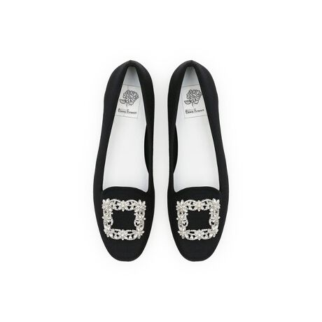 キラッと輝くビジューバックルが、足元を華やかに彩るフラットパンプス。
