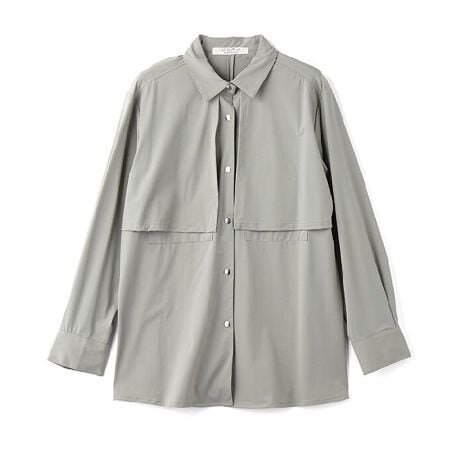 前身頃の覆い布や後ろ身頃のスリットが、アウターライクなディテールとなり、さっと羽織るだけでコーディネートが決まる一枚。