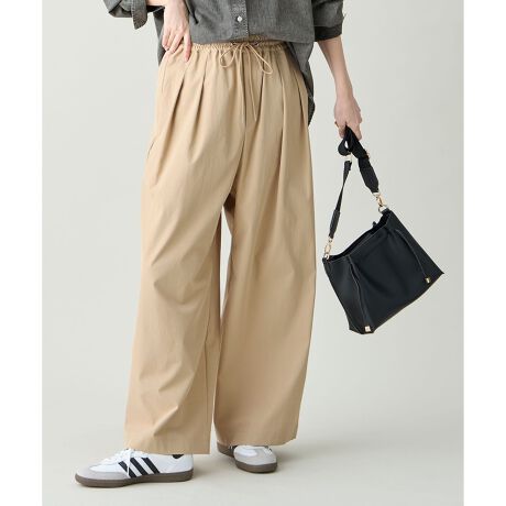 ・ドロスト仕様の2タックチノパンツで、程よくラフな抜け感を演出・内側にタックを入れることで、広がりすぎずすっきりとしたシルエットに・ウエストはゴム仕様+コード入りで、フィット感の調整も可能・リラックス感がありながら、きれい見えも叶えるデザイン