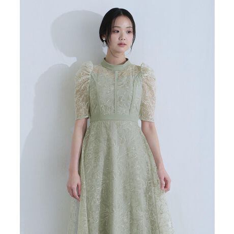 繊細な刺繍レースを贅沢に使用した、気品漂うパーティードレス。