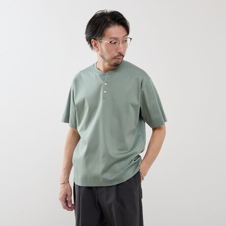 適度に厚みのあるスムース素材にシルケット加工を加えて毛羽を落とし光沢とサラっとした質感を付加した素材です。