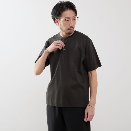 適度に厚みのあるスムース素材にシルケット加工を加えて毛羽を落とし光沢とサラっとした質感を付加した素材です。