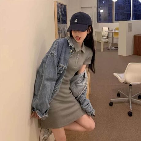 【ポロシャツ風ミニワンピース】