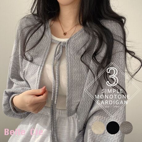 シンプル 黒 白 グレー モノトーン 冷房対策 オフィス 通勤 通学 服 かわいい ゆったり リボン 韓国 丈短め 前結び カーデガン