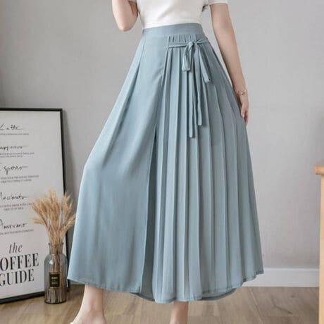 -アシンメトリーのプリーツデザインがおしゃれでかわいいガウチョです