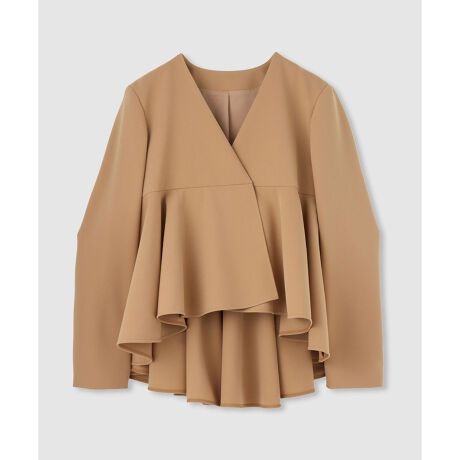 フレアをたっぷりと入れたペプラムデザインが印象的なジャケット。