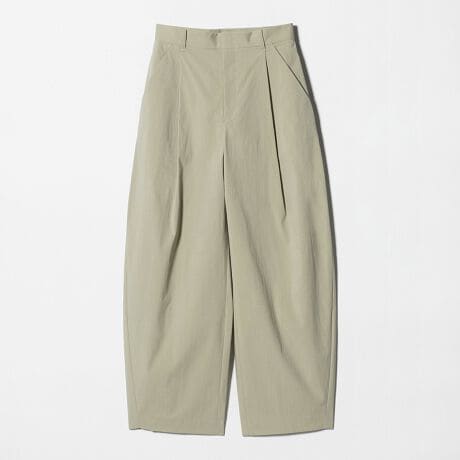 綿ナイロンブレンドのライトな素材感でハリはありつつタイプライターパンツのように軽いはき心地。