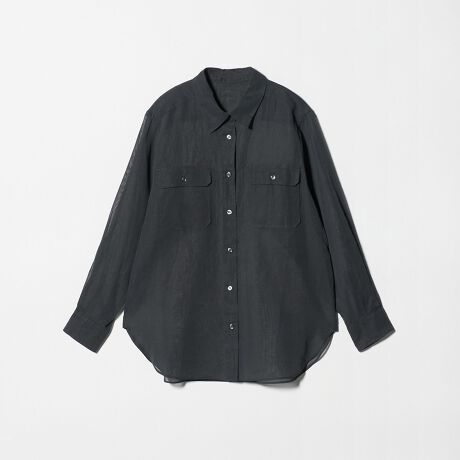 シアーで繊細な表情の生地に、ワークシャツのディテールであるダブルポケットをポイントにしてカジュアルに仕上げました。