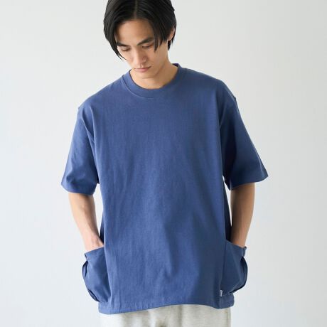 〇サイド切り替えとポケットの立体感が、シンプルなTシャツにさりげないアクセントをプラス