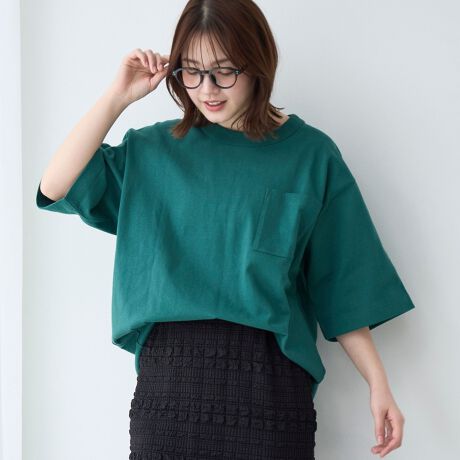 シンプルなポケットTシャツでどんなスタイリングにも合う万能アイテム