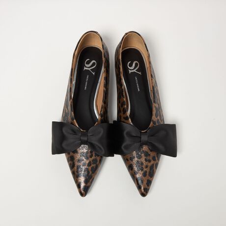 アッパーに施された大きなリボンが目をひく一足。