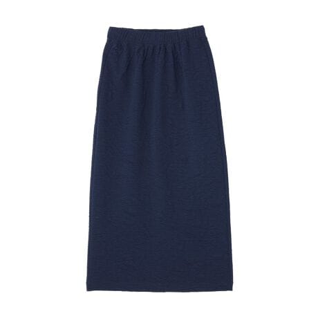 楽なはき心地と上品さを両立したロングシルエットふんわりとした凹凸感が魅力のフクレジャガード生地が、装いに奥行きをプラスします。体のラインを拾いすぎないタイトな形で、大人らしい落ち着いた雰囲気に仕上がります。ウエストゴム仕様のため、着脱が簡単で日常使いしやすいのも嬉しいポイントです。ロング丈が縦のラインを強調し、スタイルアップ効果も期待できます。カジュアルにもきれいめにも対応できるので、トップス次第で印象を変えられます。シーズンレスで使いやすく、ワードローブにあると重宝するアイテムです。透け感[なし]