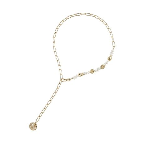 さりげない輝きで、コーデに上品な表情を添えるやわらかな艶感のバロックパール風デザインが、首元に優しい印象を与えます。そこにコインモチーフをプラスすることで、甘さの中に程よい大人っぽさを感じさせる仕上がりです。華奢すぎず重すぎない絶妙なボリューム感なので、普段使いからお出かけまで幅広く取り入れやすいです。シンプルなトップスに合わせるだけで、こなれた雰囲気を演出できます。アクセントとして取り入れやすく、顔まわりを明るく見せてくれるのも嬉しいポイントです。流行に左右されにくいデザインのため、長く愛用でき、ワードローブに一本あると重宝します。※モデル着用画像は、光の当たり具合で色味が違って見える場合がございます。※お使いのモニター環境によって商品の色味が違って見える場合がございます。