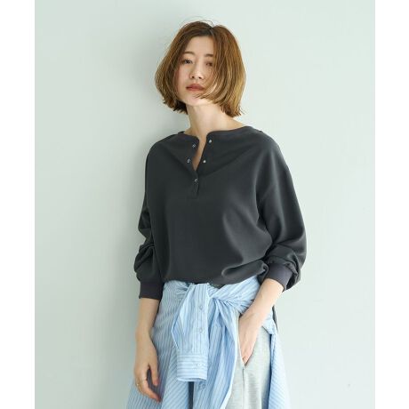 前後どちらでも着用でき、ヘンリーネックとクルーネックの2wayを楽しめます。