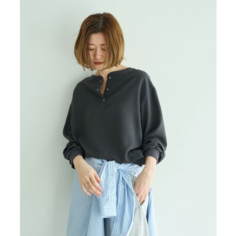 前後どちらでも着用でき、ヘンリーネックとクルーネックの2wayを楽しめます。