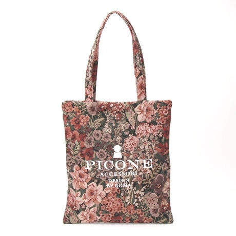 ゴブラン織りならではのクラシカルで繊細な花柄が、装いに上品なアクセントを添える縦型トートバッグ。人気ブランド PICONE ACCESSORI のロゴがさりげないポイントとなり、上品でエレガントな印象です。軽やかな存在感で持ちやすく、A4サイズもすっきり収まる大容量で、日常生活はもちろん、ビジネスシーンにも…シーンレスに幅広くお使いいただけます。224gと軽量で、肩にかけることが出来る長さの持ち手はお出かけに最適です。マグネット開閉で荷物が取り出しやすく便利なのも魅力です。