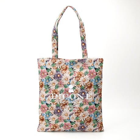 ゴブラン織りならではのクラシカルで繊細な花柄が、装いに上品なアクセントを添える縦型トートバッグ。人気ブランド PICONE ACCESSORI のロゴがさりげないポイントとなり、上品でエレガントな印象です。軽やかな存在感で持ちやすく、A4サイズもすっきり収まる大容量で、日常生活はもちろん、ビジネスシーンにも…シーンレスに幅広くお使いいただけます。224gと軽量で、肩にかけることが出来る長さの持ち手はお出かけに最適です。マグネット開閉で荷物が取り出しやすく便利なのも魅力です。
