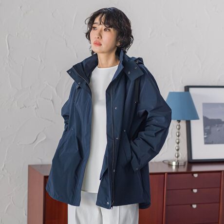 裾やフード周りのコードを絞ったり、袖口ベルトを調整したり、