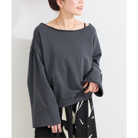 ベーシックでシンプルなデザインなので、飽きなくスタイリングができる着回し力抜群のベーシックアイテムです。カジュアル見えですが、程よくデコルテが見え、首元と袖口が裁ち切りになったディティールが抜け感を与えてくれます。
