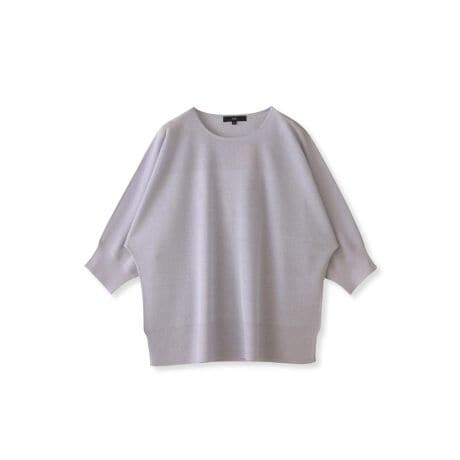 肘下丈のドルマンスリーブで肌離れの良いシルエットで春から真夏まで快適に着ていただけます。ニットならではの編地切替を胸元のアクセントにしています。