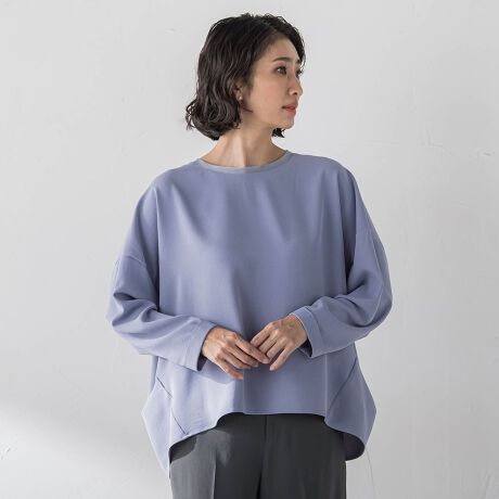 カットソーのように伸びて、着心地はらくなのに、見た目はきちんとブラウスライク。